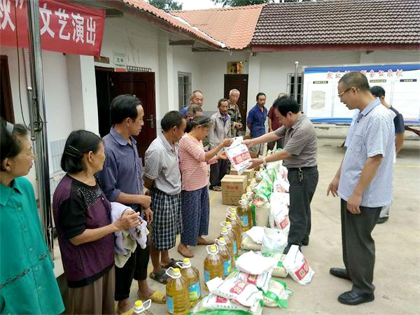 2017926日,在国庆、中秋佳节即将来临之际,农工党遂宁市委会副主委兼秘书长廖清安带领机关干部到帮扶联系贫困村大英县玉峰镇石盘沟村开展扶贫慰问活动,为21户贫困村民送去了价值5000余元的大米、油和汤圆等慰问品,把温暖送到困难群众心中,受到当地村委干部和群众的热烈欢迎。