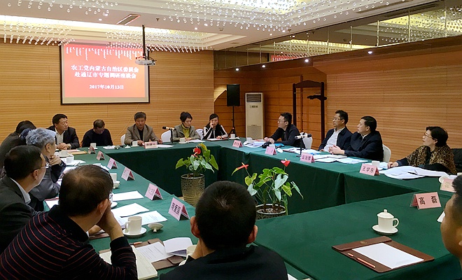 2017年10月12日至14日,农工党内蒙古自治区委会组成调研组,由农工党内蒙古自治区委会主委、内蒙古自治区政协人口资源环境委员会主任云治厚带队,赴通辽市进行为期3天的调研。农工党内蒙古自治区委会专职副主委王学东,副主委蓝峰,参政议政副部长霍弘,农工党通辽市委会主委、通辽市疾控中心主任布仁巴图,农工党通辽市委会副主委、通辽市科协办公室主任赫金香参加了调研。中共通辽市委统战部副部长王宏华陪同调研。
