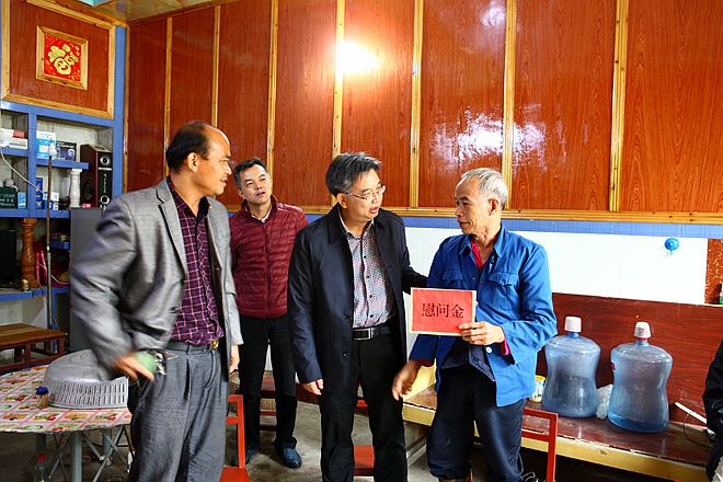 何玉庭首先来到因病返贫的李庆家,关切询问李庆身体状况,详细了解家庭收入,并送上慰问金,勉励李庆一家放心治病,照顾好身体。何玉庭指出,当前全国上下正深入学习贯彻习近平总书记关于脱贫攻坚重要讲话精神,区委将助力于全区脱贫攻坚年度战役,主动担当,积极作为,决不让一户贫困户群众掉队。