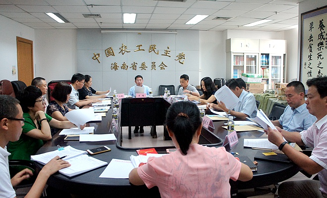 2017年10月13日下午,农工党海南省七届五次主委会、七届三次常委会在海口召开。海南省政府副省长、农工党海南省委会主委王路主持会议,副主委毕华、吉小妹、张俊清、罗和平、韩克胜、吴树行出席会议。