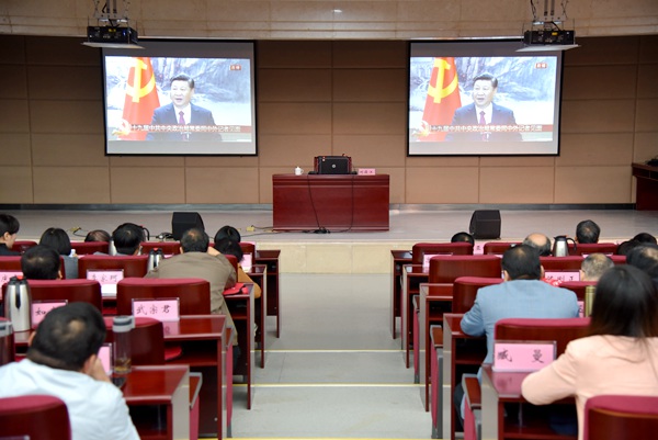20171025日,农工党河南省委会在大别山干部学院组织党员集中收看中央电视台十九届中共中央政治局常委同中外记者见面现场直播召开会议,专题学习中共十九大精神。农工党河南省委会领导班子成员,省委会常委、委员,省监委会委员,各市级组织负责人,全省农工党党员中的部分市级以上人大代表、政协委员、副处级以上干部,各市委会专职副主委、秘书长,省委会机关干部等共100余人参加会议。农工党河南省委会专职副主委花亚伟主持会议并讲话。