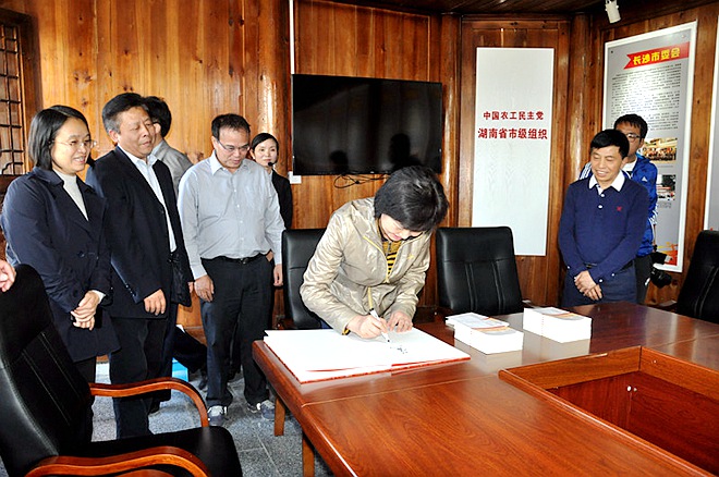 2017年10月31日,中共湖南省委常委、省委统战部部长黄兰香一行调研农工党湖南地方组织革命活动史料陈列馆。农工党湖南省委会主委、南华大学校长张灼华,农工党湖南省委专职副主委蒋秋桃陪同调研。参差调研旨在深入学习贯彻落实十九大精神,充分发挥统一战线的法宝作用。