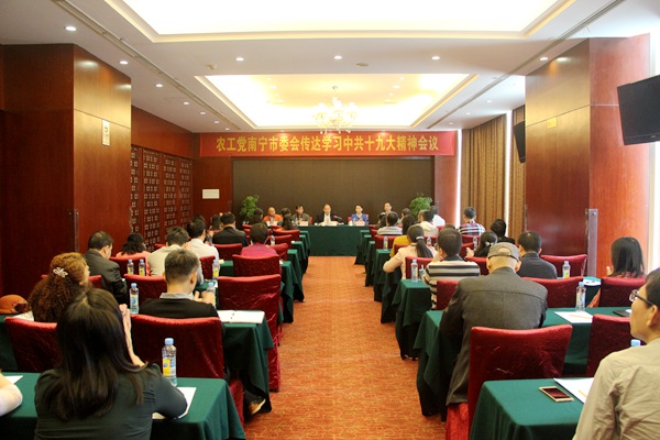 2017年11月5日,农工党南宁市委会召开会议传达学习中共十九大精神,对当前和今后深入学习宣传贯彻中共十九大精神进行研究部署。中共南宁市委统战部副部长张献辉应邀到会宣讲十九大精神。农工党南宁市委会主委黄玉燕出席会议并讲话,副主委黄宗贵、金轮、周小军出席会议,会议由金轮副主委主持。