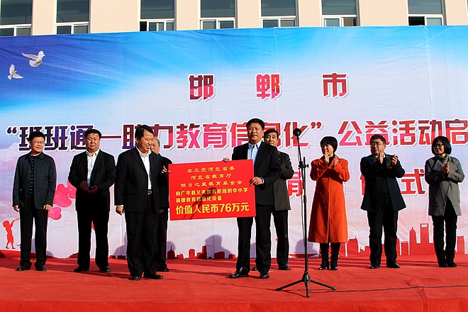 在启动仪式上,明日之星公益基金会向邯郸市教育局和广平县教育局分别捐赠了价值456万元和76万元的教育信息化设备。