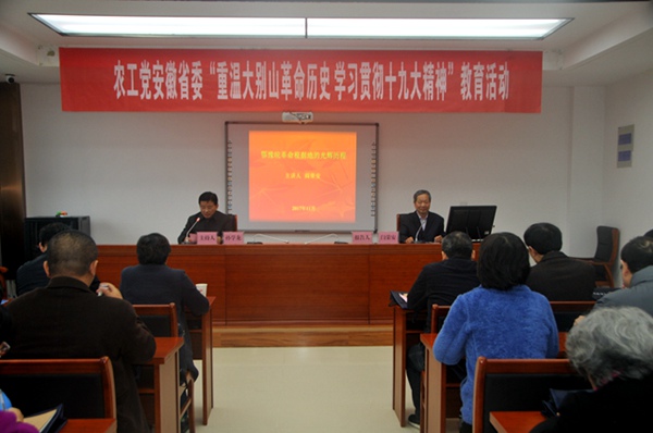 2017年11月17日至18日,在“红军的摇篮、将军的故乡”金寨县,农工党安徽省委会组织省直各基层支部党员30余人开展“重温大别山革命历史学习贯彻十九大精神”教育活动,活动由农工党安徽省委会副主委孙学龙主持,农工党六安市委会协助开展活动。
