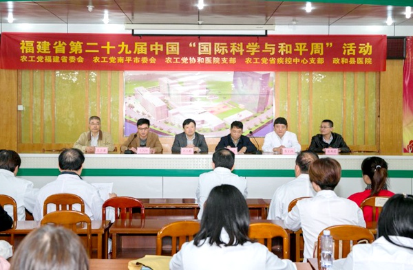 11月18日,农工党福建省委会与南平市委会、协和医院支部、省疾控中心支部在政和县医院举行福建省第29届“国际科学与和平周”义诊宣教活动,农工党福建省委会专职副主委杨琳出席活动开幕式并宣布活动启动,中共政和县委常委、统战部长苏久勤出席活动开幕式。