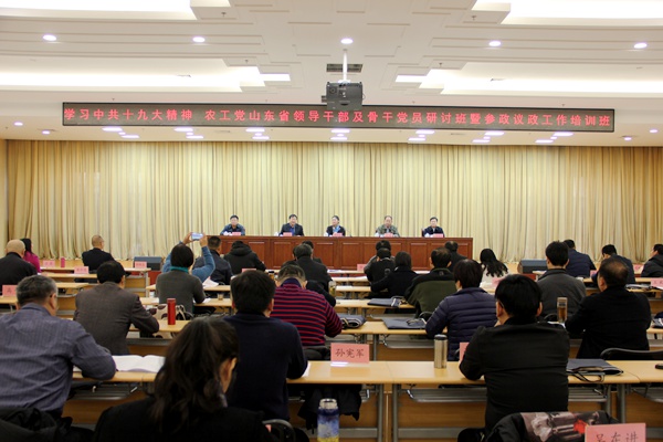 2017年12月5日至8日,农工党山东省委会在山东省社会主义学院举办了学习中共十九大、农工党十六大精神领导干部及骨干党员研讨会暨参政议政工作培训班。农工党山东省委会主委段青英出席并讲话,中共山东省委统战部副部长、山东省社会主义学院党组书记、第一副院长马啸致辞,农工党山东省委会专职副主委吕善勇主持并传达农工党十六大精神,省委会副主委刘德山、秘书长付军出席开班式。中共山东省委统战部常务副部长赵强为学员们做了《习近平总书记的领袖风采》的精彩报告并出席了结业式。