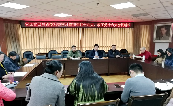2017年12月12日下午,农工党四川省委会机关召开学习会,专题传达学习贯彻中共十九大、农工党十六大会议精神。农工党四川省委会驻会副主委夏华祥主持学习会并讲话。