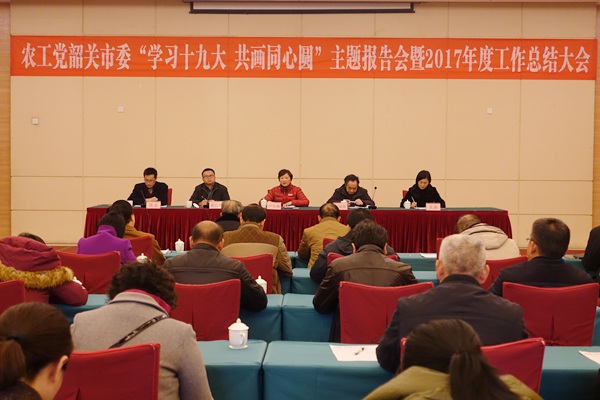 2017年12月17日,农工党韶关市委会召开“学习十九大 共画同心圆”主题报告会暨2017年度工作总结大会。农工党韶关市委会主委卢春燕,原主委王远东,副主委吴蔚、黄得慧出席会议。中共韶关市委统战部党派科科长熊亮应邀出席会议。