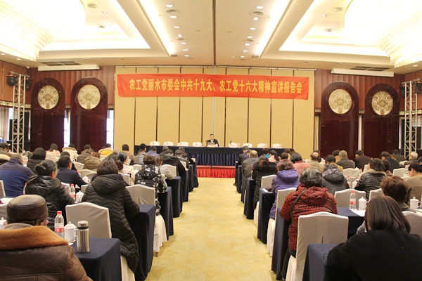 2017年12月17日,农工党丽水市委会召开由全体党员参加的中共十九大、农工党十六大精神宣讲报告会。市委会邀请农工党浙江省委会主委、浙江大学副校长罗建红作中共十九大、农工党十六大精神宣讲。省委会组织部部长张红应邀参加了会议。市委会主委丁岳清主持会议。
