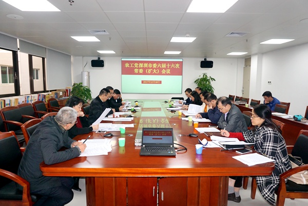 2017年12月18日,农工党深圳市委会召开六届十六次常委(扩大)会议,学习贯彻农工党十六大精神,省委会副主委、市委会主委常巨平主持学习会。市委会副主委樊成玮、朱为刚、肖敏静,秘书长杨灵祥参加会议。