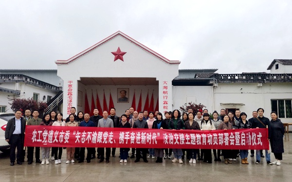2022年4月15日,农工党遵义市委会组织主委会班子成员、市委会委员、基层组织负责人、专委会负责人、机关科室负责人,在凤冈县永安镇崇新村毛主席批示纪念馆启动“矢志不渝跟党走、携手奋进新时代”政治交接主题教育。农工党遵义市委会主委刘采成出席并讲话,遵义市侨联副主席兼秘书长肖直霖出席,专职副主委张艳霞主持启动仪式。