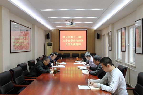 2018年1月5日下午,农工党天津市委会机关理论学习中心组专题学习中共天津市委十一届三次全会暨全市经济工作会议精神。市委会专职副主委兼秘书长王毅斋主持会议并讲话。