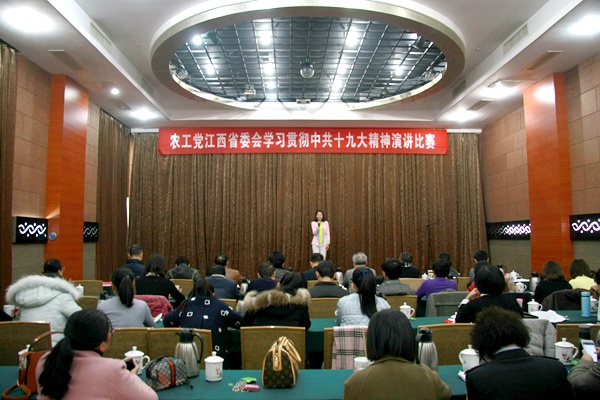 2018年1月12日,农工党江西省委会在南昌市滨江宾馆举办以“学习中共十九大,不忘初心跟党走”为主题的学习贯彻中共十九大精神演讲比赛。省委会主委史可致辞并担任比赛评委,林凯专职副主委出席比赛并担任比赛评委,江西省楹联学会会长、南昌大学人文学院文师华教授,农工党南昌师范学院支部主委、江西省心理咨询与治疗专业委员会会长王坚,南昌市政府参事、农工党南昌市委会副处级干部许秀柏参事应邀担任比赛评委。