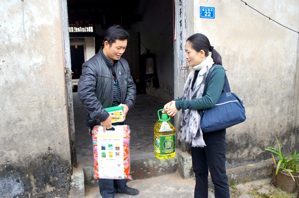 慰问组一行分四个小组分别走访慰问了46家贫困户,送去价值9000余元的米、油、饼干等慰问品。活动中,工作人员通过深入贫困家庭,详细询问每户的家庭经济来源,身体健康状况,子女的教育工作等各方面情况,尽力帮助他们克服困难,解决实际问题,同时鼓励他们要克服眼前的困难,树立起生活的信心。通过走访慰问,贫困群众对扶贫政策有了进一步的了解,更加坚定了脱贫信心。