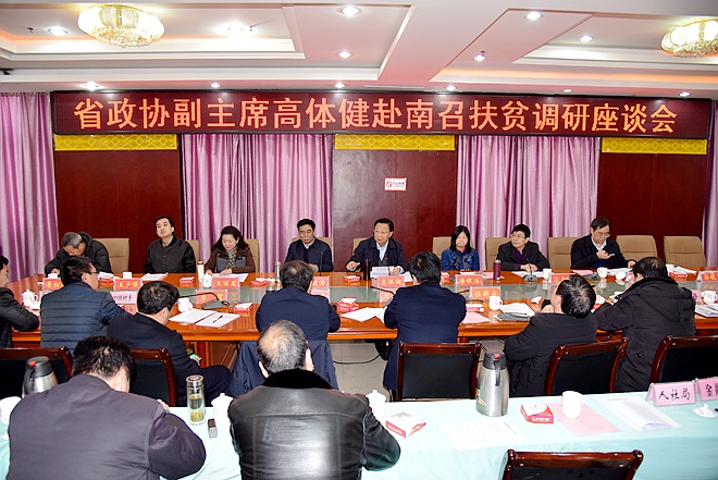 2018年1月19日至20日,河南省政协副主席、农工党河南省委会主委高体健带队赴南召县看望慰问驻村扶贫干部、贫困户、考察扶贫企业,并听取基层干部群众对做好精准脱贫攻坚工作的意见建议。农工党河南省委会专职副主委花亚伟,省政协民宗委副主任唐银浩,南阳市政协副主席李建涛,农工党河南省委会秘书长王丽亚参加相关活动。