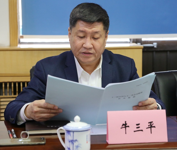 全国人大代表牛三平介绍了十三届人大一次会议的背景、基本概况及个人的履职情况,传达了习近平总书记在大会期间的重要讲话精神、政府工作报告、宪法修正案。