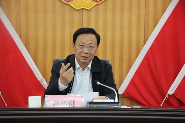 高体健在讲话中指出,今年全国两会是高举中国特色社会主义伟大旗帜、全面贯彻习近平新时代中国特色社会主义思想和中共十九大精神的大会,是民主、团结、求实、奋进的大会,内容十分丰富、精神十分重要。他在传达习近平总书记在全国两会上的重要讲话精神和全国两会主要精神后强调,要把学习贯彻习近平总书记重要讲话精神与学习贯彻习近平新时代中国特色社会主义思想、中共十九大精神和全国两会精神贯通起来,进一步增强政治定力,牢固树立“四个意识”、自觉坚定“四个自信”,在政治立场、政治方向、政治原则、政治道路上同以习近平同志为核心的中共中央保持高度一致,自觉维护中共中央权威和集中统一领导,与执政党共同把我国社会主义新型政党制度坚持好、发展好、完善好,努力提高中国特色社会主义参政党地方组织建设水平和履职实效。