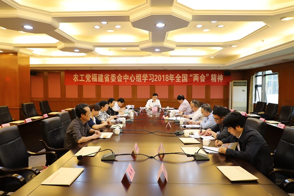2018年4月4日下午,农工党福建省委会中心组召开学习会,专题学习2018年全国两会精神。福建省政协副主席、农工党福建省委会主委刘献祥主持会议并讲话,省委会副主委李笃妙、杨琳、侯建明、郭丽珍、曹荣出席会议并发言。