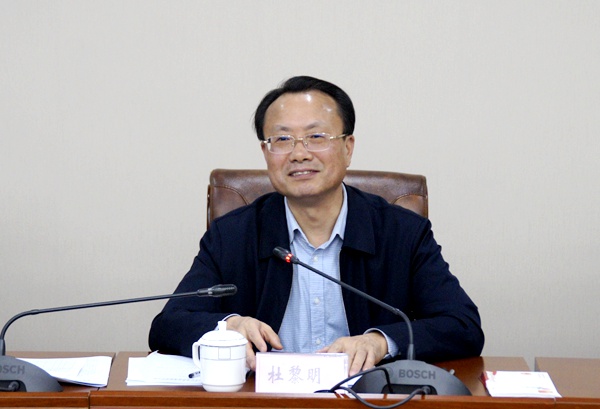 2018年4月8日下午,农工党重庆市委会主委杜黎明在市委会机关会议室主持主委接待日活动,听取农工党渝北区委会工作汇报,并与渝北区委会党员围绕深入学习贯彻中共十九大精神,努力建设适应新时代要求的中国特色社会主义参政党地方组织的主题进行座谈交流。