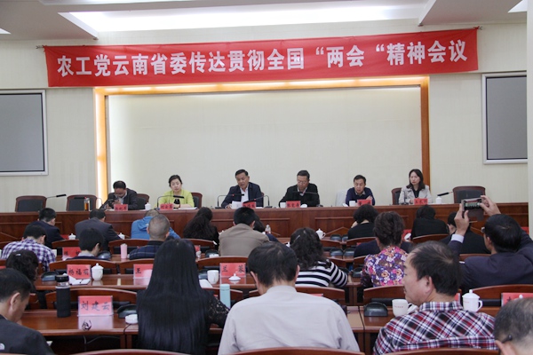 2018年4月10日,农工党云南省委会在昆明召开传达贯彻全国两会精神会议。全国人大代表、农工党党员王长林,全国政协委员、农工党云南省委会主委杨鸿生分别传达了十三届全国人大一次会议、全国政协十三届一次会议精神,农工党云南省委会副主委张宽寿、何云葵、董峻、陈纪军出席会议,何云葵主持了会议。