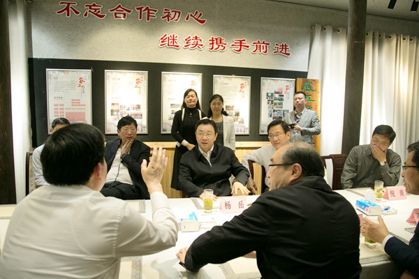 杨岳部长一行在袋鼠妈妈茶馆会议室召开了现场座谈会,观看了《惠山古镇同心实践联盟暨无锡市统战文化建设创新实践示范点创建纪录》,交流了惠山古镇同心实践联盟的特色服务和社会服务活动经验,深入了解了同心实践联盟创建及实践创新工作情况。