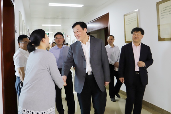 在农工党江西省委会机关,刘奇书记与机关干部职工一一握手、亲切交流,了解大家工作生活情况,并认真观看了农工党江西省委会统一战线与多党合作教育长廊、纪念中共中央发布“五一口号”70周年展板及其它学习展板。