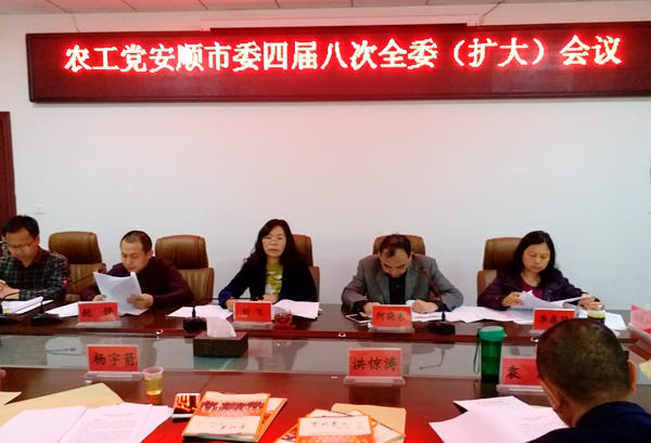 2018年4月10日,农工党安顺市四届八次全委(扩大)会议召开,市委会主委刘飞出席会议并讲话。会议由市委会副主委何晓东主持。