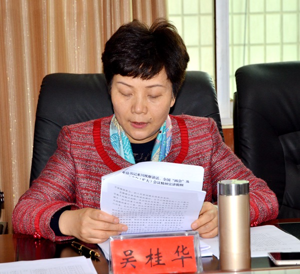 会上,吴桂华就习近平总书记来川视察讲话、十三届全国人大一次会议、全国政协十三届一次会议及中共四川省委常委会扩大会议等精神作了宣讲。她原滋原味学讲话原文,举生动事例谈参会感受,提五条实施意见指导当前工作,整个宣讲内容丰富、重点突出、语言朴实、精彩生动。