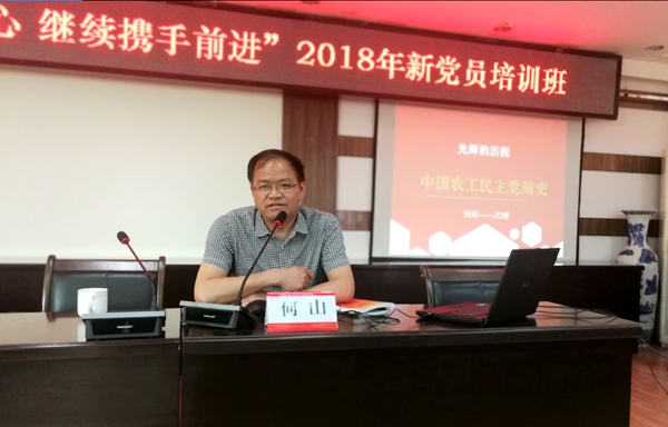 2018年4月17日,农工党宜宾市委会“不忘合作初心 继续携手前进”2018年新党员培训班在党派楼四楼会议室开班,农工党宜宾市委会主委何山,副主委代松、金华,秘书长刘敏参加开班仪式。代松主持开班仪式,介绍了培训期间的课程安排。