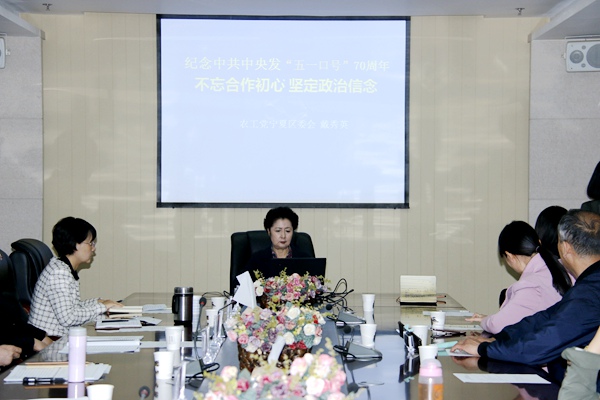 上午,农工党宁夏区委会召开了纪念座谈会,传达学习了《关于深入学习贯彻习近平总书记3月4日重要讲话精神的通知》、《关于开展中共中央发布“五一口号”70周年纪念活动的通知》,戴秀英主委作主题发言,区委会领导班子成员及常委会组成人员分别作了5-8分钟的交流发言。