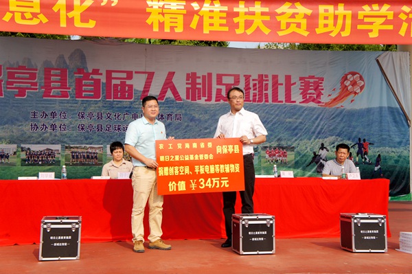 2018年4月24日-25日,农工党海南省委会一行4人赴保亭、乐东两县参加中国初级卫生保健基金会明日之星公益基金管委会开展的“助力教育信息化”精准扶贫助学活动捐赠仪式。