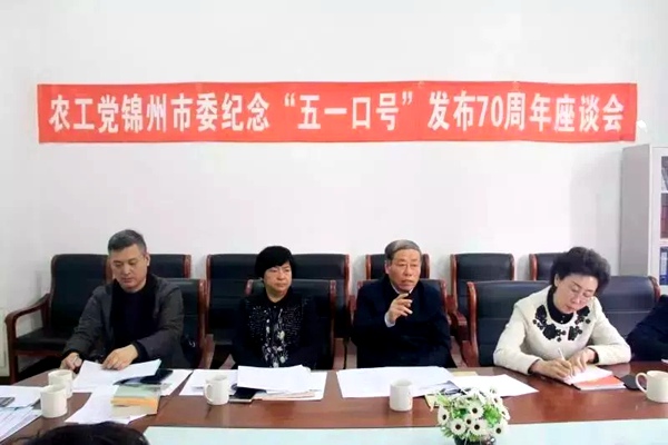 2018年4月23日,农工党锦州市委会召开纪念“五一口号”发布70周年座谈会。农工党锦州市委会主委唐凤君,市委会专职副主委李英、副主委衣服新、汪孝男出席会议,会议由唐凤君主持。