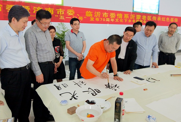 2018年4月27日-28日,农工党山东省委会与济南市委会、临沂市委会在农工党山东省委会专职副主委王军的带领下,在费县光明眼科医院开展了“情系沂蒙传承红色基因”送书画下乡活动。