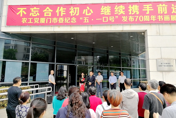 2018年4月28日上午,由农工党厦门市委会主办、集美区文化馆协办的“不忘合作初心 继续携手前进——农工党厦门市委会纪念‘五一口号’发布70周年书画展”在集美区文化馆开幕,并举行了简短的开幕仪式。