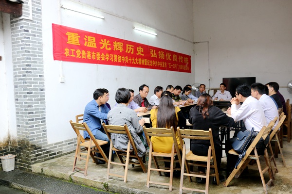 2018年4月28日,农工党贵港市委会开展“重温光荣历史 弘扬优良传统”为主题的学习贯彻中共十九大精神暨纪念中共中央发布“五一口号”70周年活动,组织党员到覃塘区三里镇罗村中共广西省第三次代表大会旧址接受革命传统教育,期间召开了纪念座谈会。
