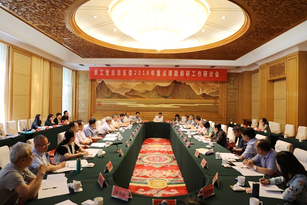 2018年5月15日,农工党内蒙古区委会组织召开2018年重点课题调研工作研讨会,就区委会报送中共自治区党委统战部重点课题《关于对我区因病致贫(返贫)人口精准扶贫的调研》的调研工作进行统一安排部署。农工党内蒙古区委会主委云治厚,副主委王学东出席会议。自治区人力资源和社会保障厅医保处副处长色登敖其格应邀参加会议。农工党内蒙古区委会副主委蓝峰主持会议。