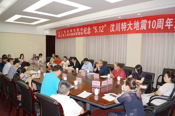 2018年5月23日,农工党成都市委会、农工党上海市静安区委会在成都市民主党派大楼会议室联合召开纪念“5·12”汶川特大地震10周年座谈会。农工党四川省委会副主委、成都市委会主委甘华田,农工党上海市委会副主委、静安区委会主委叶强出席会议并讲话。市委会副主委胡伟峰、秘书长曾琪,机关各处室负责人,农工党都江堰市总支部分党员代表和5名汶川特大地震上海市医疗援建队成员参加了座谈会。