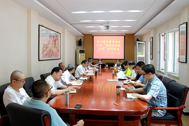 2018年6月15日,农工党天津市委会机关举办第二期“统战业务我来讲”活动,农工党天津市委会专职副主委兼秘书长王毅斋出席活动并点评。