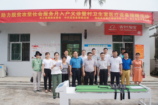 2018年6月23日上午,农工党海南省委会医疗设备捐赠仪式在定安县定城镇深田村卫生室举行。省委会专职副主委毕华,省委会副主委、秘书长吉小妹,定安县委常委、统战部部长陈明永出席,海南伟光医疗器械有限公司总经理张伟出席捐赠仪式并讲话。捐赠仪式由吉小妹主持。