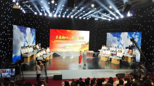 2018627日下午,中共江苏省委统战部在省教育电视台教育频道举办“不忘初心,携手前行——江苏省统战系统学习十九大精神知识竞赛”,农工党江苏省委会副主委吴建坤出席观看竞赛,并给获奖选手颁发奖杯。