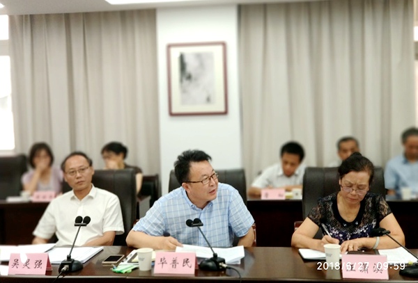 2018年6月27日上午,黄山市上半年经济形势分析政党协商通报会暨统战双月座谈会召开。黄山市政府副市长、农工党黄山市委会主委毕普民出席会议并发言。