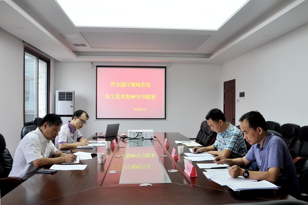 2018年7月12日上午,湖南省交通厅来农工党湖南省委会对0071号提案《关于加强农村公路建设和管护的建议》举行现场办理座谈会。农工党湖南省委会参政议政处负责人孙逢华主持会议。省交通厅农村公路建设处处长喻波,提案主笔人、农工党党员蒋鑫参加会议。