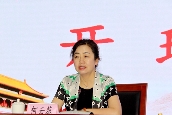 何云葵要求全体参训学员要提高认识站位,真学真研真懂,深入学习贯彻中共十九大精神,用习近平新时代中国特色社会主义思想武装头脑,切实增强“四个意识”,坚定“四个自信”,始终在思想上政治上行动上与以习近平同志为核心的中共中央保持高度一致。要坚持理论联系实际,坚持问题导向,紧紧围绕统筹推进“五位一体”总体布局和协调推进“四个全面”战略布局,撸起袖子加油干,切实承担起中国特色社会主义亲历者、实践者、维护者、捍卫者的政治责任;要遵章守纪勤学,体现良好政治风貌。