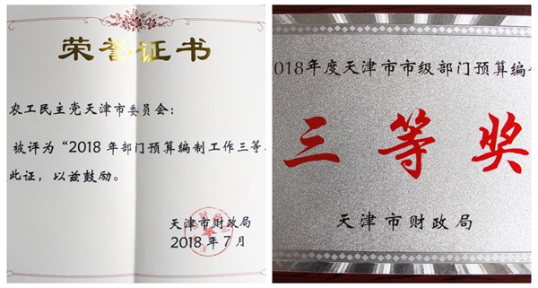 农工党天津市委会荣获“2018年部门预算编制工作三等奖”
