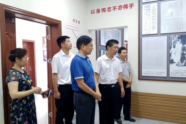 2018年7月19日上午,中共连云港市委统战部副部长孙振东,农工党连云港市委会主委高慧、秘书长邓青一行冒着高温酷暑来到邓演达文献馆,就连云港市民主党派成员教育示范基地建设工作进行专题调研。连云港市委统战部党派处处长李铭、农工党连云港市委会办公室主任冯怀金参加活动。