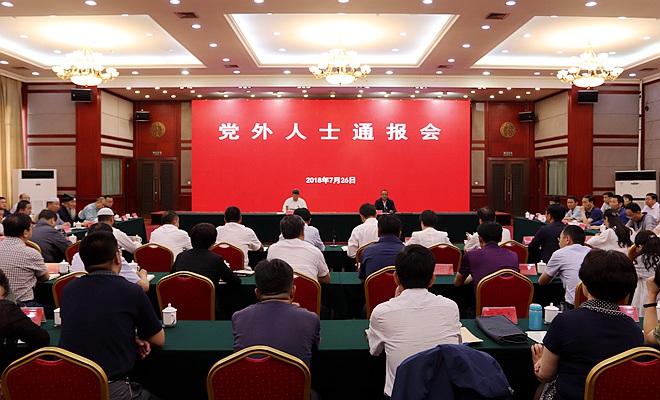 2018年7月26日,中共青海省委统战部在胜利宾馆召开党外人士通报会。中共青海省委常委、统战部长公保扎西主持会议并讲话,统战部副部长马文彪传达中共青海省委十三届四次全会精神。全省各民主党派省委、工商联、无党派人士、非公有制经济代表人士和民族宗教界代表人士80人参加了通报会。
