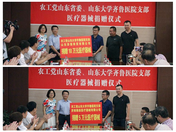 上午,在沂南县人民医院举行了医疗器械捐赠仪式,农工党山东大学齐鲁医院支部、山东泽强商贸有限公司、济南颐泉医疗器械有限公司,共向沂南县医疗系统捐赠了价值15万元的医疗器械。刘德山、任兴业、沂南县政协主席刘正生,县人民医院院长孙兴华分别做了致辞及讲话。