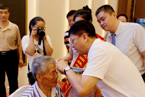 中共桂林市委常委、统战部部长王建毅出席活动,与来自深圳香港的爱心人士一道为前一天10位接受白内障手术的贫困患者揭开纱布,展现光明。农工党桂林市委会主委农军参加活动,接受深圳狮子会会长伍泽川向农工党桂林市委会赠送的纪念牌。