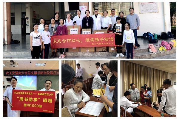 这是农工党暨南大学总支自2015年以来,连续第五年到方正小学开展捐书助学健康讲座和医疗咨询义诊公益活动,五年间总支共为孩子们捐赠图书8000余册,为孩子们的成长提供了更多的精神食粮,为师生们的身心健康提供积极的意见和建议。